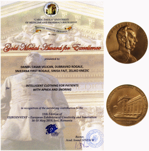 Inovacija Inteligentna odjeća za detekciju apneje i hrkanja autora Daniela Časara Veličana, Dubravka Rogalea, Snježane Firšt Rogale, Siniše Fajta i Željka Knezića osvojila je zlatnu medalju te Golden Medal Award for Excellence kao priznanje za izvanredan doprinos, koju je dodijelio rektor Acad. Ioanel Sinescu ispred Carol Davila University of Medicine and Pharmacy iz Bukurešta. Znanstveno-istraživačkom timu prof. dr. sc. Dubravka Rogalea priključio se i prof. dr. sc. Siniša Fajt sa Fakulteta elektrotehnike i računarstva te dao značajan doprinos razvoju spomenute inovacije.