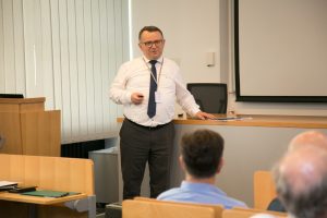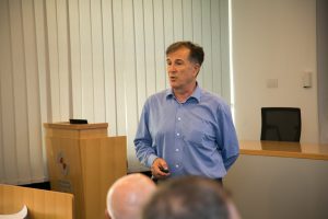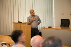 U svome je predavanju pod naslovom Napredne tehnike u znanstvenim istraživanjima kao temelj za primjenu u preciznoj poljoprivredi prof. dr. sc. Davor Romić (Sveučilište u Zagrebu Agronomski fakultet) plastično obrazložio, temeljem vlastite znanstvene ekspertize, smisao precizne poljoprivrede (precise agriculture): praćenje zahvata primjenom suvremenih tehnologija u poljoprivredi, rastu i razvoju bilja, uzgojnim mjerama uske prostorne i vremenske rezolucije, kako bi se pravovremeno donosile odluke kojima se smanjuju troškovi i povećava proizvodnja i kvaliteta proizvoda, a poljoprivredu čini održivom. Stoga precizna poljoprivreda ima veliki potencijal za unapređenje poljoprivredne proizvodnje, približavajući se svakoj specifičnoj proizvodnoj jedinici, gotovo svakoj biljci, a uzimajući u obzir ekonomske, proizvodne i ekološke uvjete. Njen razvoj u svijetu sve se više širi, a u Hrvatskoj poljoprivredi nažalost tek je na početku. U svome je izlaganju prikazao neke od rezultata primjene suvremenih tehnologija u gospodarenju vodom u poljoprivredi, na primjeru posebnih uvjeta gospodarenja u uzgoju drvenastih kultura na melioriranom kršu, ukazujući na potrebu razvoja modela transporta vode u specifičnim uvjetima melioriranog krša kao podloge za primjenu precizne poljoprivrede.