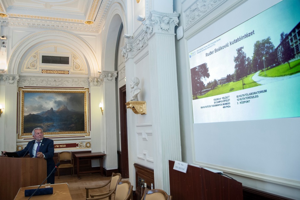 U organizaciji Mađarske Akademije znanosti znanstveni savjetnik u trajnom zvanju Karolj Skala je održao predavanje ustoličenja 19. rujna 2019 u kongresnoj dvorani Mađarske Akademije znanosti u Budimpešti. To je slijed događaja nakon 191. Skupštine na kojoj je izabran za redovitog člana iz inozemstva. Na tom predavanju je K. Skala izložio postignuća u području laserske i optoelektroničke tehnologije te razvojnih pravaca i stremljenja u području distribuiranog računasrtva. Detaljnom analizom razvoja ICT tehnologije u minulih pola stoljeća ukazao je na trenutno aktualan razvoj raspodiljenih servisnih tehnologija u pragmatičnom „ Dew-Fog Cloud Computing razvoju. koji vodi prema globalnom servisnom sustavu koji je nazvan sa strane predavača kao Rainbow Servis. Na taj način zemlja uz prirodnu i humanu inteligenciju dobiva tri globalna distribuirana sustava kao potpora umjetne inteligenciji: Energetski grid, Informacijski grid (www) i Servisni grid (rainbow). Izlaganje je završeno sa vizijom razvoja ICT tehnologije i društva u cjelini do 2030 godine kada se predviđa stanoviti tehnološki singularitet zbog eksponencijalnog rasta ICT-a i nedovoljne harmonizacije i kompatibilizacije naprednih operacijskih i midelware sutava i procesa umjetne inteligencije na zemlji.
