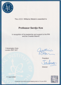 Na godišnjoj skupštini londonskog Kraljevskog instituta za navigaciju održanoj 18. lipnja 2024., prof. emeritusu dr. sc. Serđi Kosu  uručena je Nagrada “J. E.D. Williams” Kraljevskog instituta za navigaciju (RIN – Royal Institute of Navigation) kao priznanje za izniman doprinos ugledu, napretku i radu Instituta. Procedura za dobivanje ove nagrade je […]