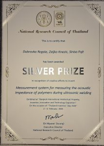 National Research Council of Thailand nagradio je sa Silver Prize inovaciju Mjerni sustav za mjerenja akustičke impedancije polimera pri ultrazvučnom spajanju autora prof. dr. sc. Dubravka Rogalea, izv. prof. dr. sc. Željka Knezića (članovi Odjela tekstilne tehnologije) i prof. dr. sc. Siniše Fajta (član Odjela elektrotehnike i elektronike). National Research Council of Thailand osnovano još 1959. godine, te predstavlja glavnu nacionalnu agenciju za financiranje istraživanja i inovacija u svim područjima znanosti u Tajlandu. Spomenuta inovacija nagrađena je sa Special Award od Toronto International Society of Innovation & Advanced Skills (TISIAS) iz Toronta, Kanada.
