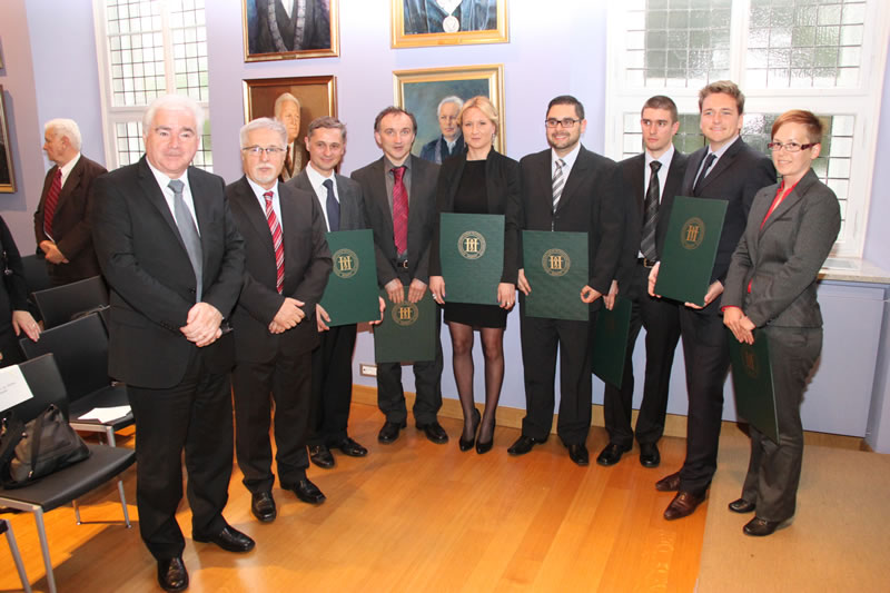 7) Na osnovi čl. 32 i 40 Statuta i čl. 12 Pravilnika o nagradama Akademije tehničkih znanosti Hrvatske, na 5. sjednici Predsjedništva Akademije održanoj 29. travnja 2014. donesena je odluka o dobitnicima nagrada Akademije za 2013. godinu. Odluku Predsjedništva potvrdila je Skupština Akademije na svom 29. godišnjem (izbornom) zasjedanju. Laureatima su dodijeljene diplome – nagrade Akademije.