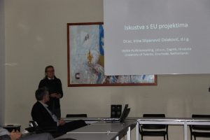 Prvo predavanje izložio je prof. Kenneth Gavin sa TU Delft, koordinator niza projekata iz programa FP7 i H2020, koji je ukazao na bitne elemente potrebne za dobivanje sredstava za financiranje znanstveno-istraživačkih projekata. Kroz predavanje je prof. Gavin u nekoliko navrata istaknuo važnost suradnje akademske zajednice i industrije kao neophodne u provedbi ovako važnih projekata. Sljedeće predavanje održala je doc. Irina Stipanović Oslaković, University of Twente i INFRA PLAN konzalting, koja je predstavila niz smjernica za pisanje projektnih prijedloga i njihovu uspješnu provedbu te je iznijela osobna iskustava o sudjelovanju u projektima. U posljednjem izlaganju koje je održao doc. Mario Bačić sa Zavoda za geotehniku Građevinskog fakulteta u Zagrebu, dan je prikaz trenutno aktualnih projekata iz programa H2020, pod nazivom DestinationRAIL i GOSafe RAIL, na kojima je Građevinski fakultet jedan od partnera. Nakon predavanja slijedila je diskusija prisutnih kroz koju su istaknute poteškoće s kojima se susreću prijavitelji iz Hrvatske, ali je istaknuta i činjenica da sve veći broj partnera na uspješno evaluiranim projektnim prijedlozima čine predstavnici malog i srednjeg poduzetništva što je jasan pokazatelj da Europska komisija uviđa nužnost razvijanja sve jačih veza između akademske zajednice i industrije u znanstveno-istraživačkim aktivnostima. Nakon Okruglog stola uslijedio je nastavak diskusije kroz druženje uz prigodni domjenak.