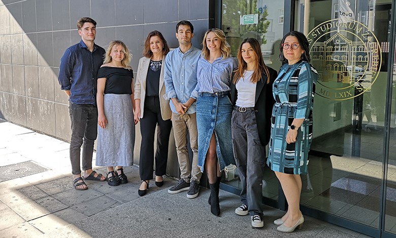 Nagrađeni studenti s mentoricom, prof. dr. sc. Slavenkom Petrak (treća slijeva) i prof. dr. sc. Anicom Hursa Šajatović (prva zdesna), dekanicom Tekstilno-tehnološkog fakulteta koji je ujedno i prijavitelj.