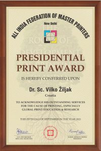 Povodom „Dana učitelja“ Odbor najveće indijske grafičke organizacije AIFMP (All India Federation of Master Printers) jednoglasno je izabrao prof. emer. dr. sc. Vilka Žiljaka te mu produžio certifikat za najboljeg međunarodnog nastavnika u grafičkoj struci.