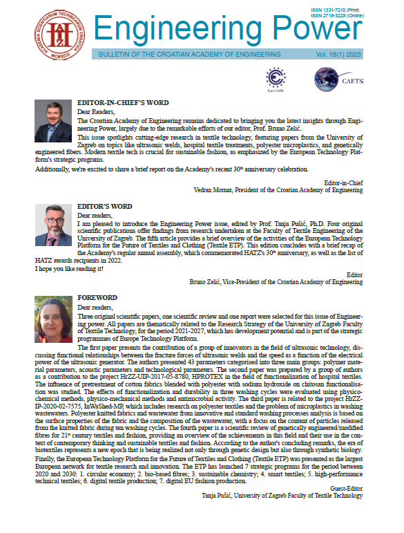 “Engineering Power” Vol. 18(1) 2023 Editor-in-Chief Vedran Mornar Editor Bruno Zelić Guest-Editor Tanja Pušić, University of Zagreb Faculty of Textile Technology CONTENT Editors’ Words Functional relationships between the breaking forces of ultrasonic welds and the speed in relation to the electrical power of the ultrasonic generator […]