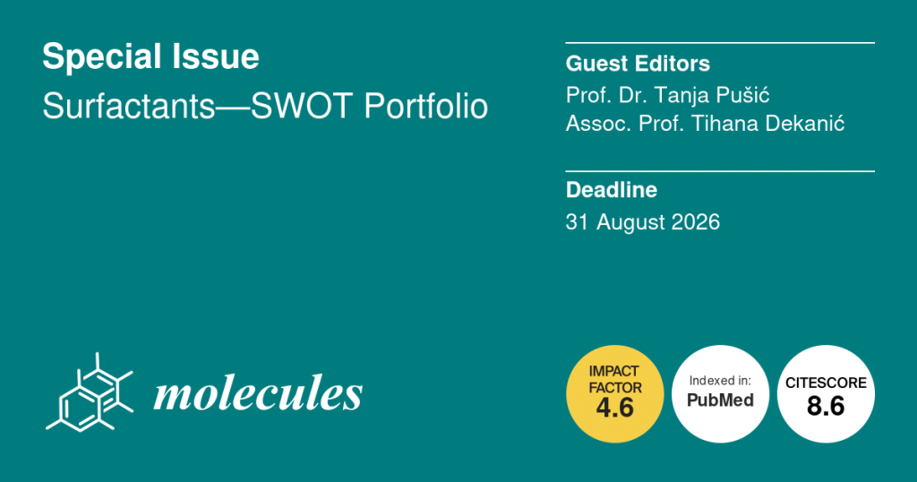 Pozivaju se članovi HATZ-a i njihovi suradnici na objavu rezultata istraživanja koja su povezana s površinski aktivnim tvarima ili tenzidima s ciljem oblikovanja SWOT portfolia u časopisu Molecules. Kratki opis teme može se vidjeti na mrežnoj stranici https://www.mdpi.com/journal/molecules/special_issues/VB62R9EG2T i letku koji je priložen uz ovu kratku obavijest.